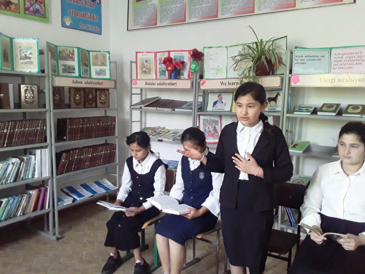 Xonqa tumanidagi 7-son maktabida õquvchilar bilan 5-tashabbusning 4-yõnalishi kitobxonlikni tarģib qilish maqsadida "yosh kitobxon" tõgaraki õtkazildi